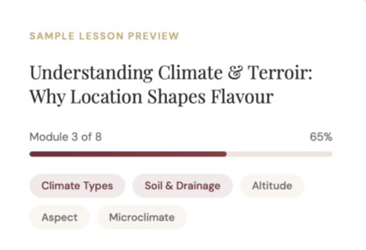 At CourseVino, we’re creating a visually rich, interactive learning platform where clear structure and story-driven learning help you fast-track your wine studies.
